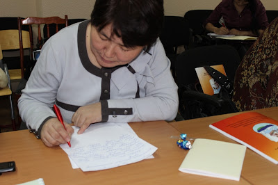 Елена Воронина,отдельное слово хочу сказать о детях, которые присутствуют на наших семинарах. В прошлом году их было трое. Мамы-учителя из сел привозят их с собой, и дети вместе с ними учатся). Хочу отметить, что это чудесные дети: спокойные, рассудительные,терпеливые.