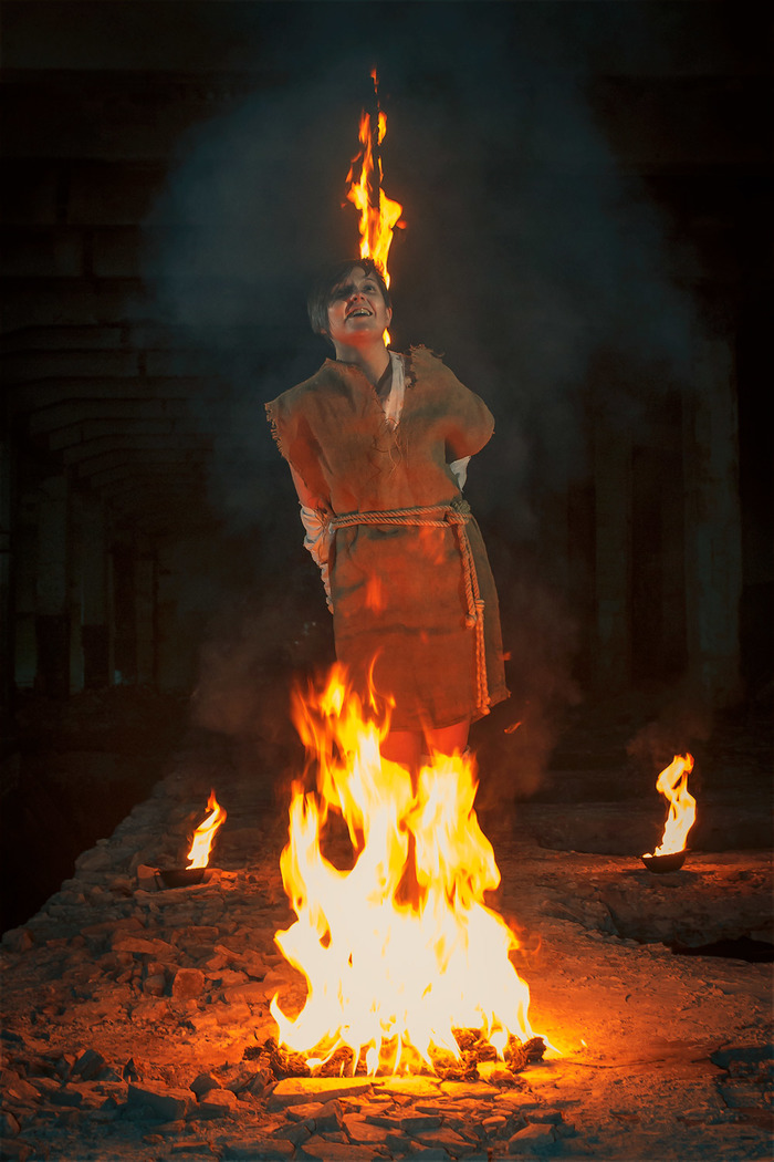 На фотосессии никто не пострадал, огонь - дело рук опытных знакомых ребят из театра огня "Семаргл".