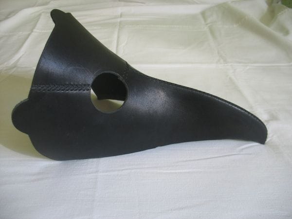 Лицо надежно защищала кожаная маска с круглыми окулярами для глаз и длинным носом. В этом клюве хранились сильные по запаху травы, сладкое масло и уксус. Так врачеватели маскировали жуткий запах от разлагающихся трупов. Такое спецснаряжение позволяло им сохранять себе жизнь и продолжать работать.