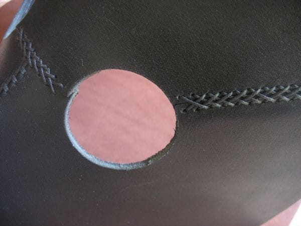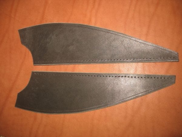 - Используя полученную выкройку, вырежьте такие же детали из кожи.