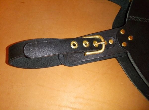 - Следующим этапом станет приделывание с помощью заклепок, клея или ниток ремней.