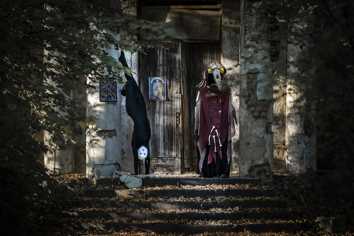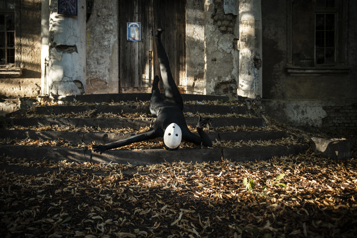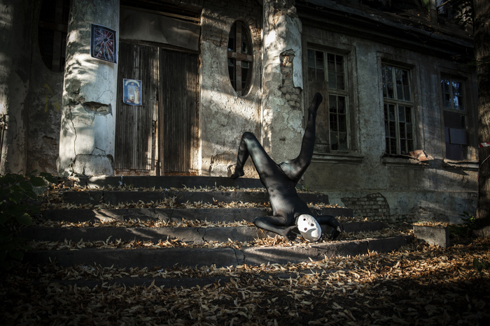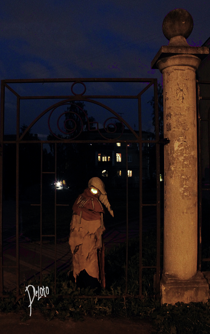 Пять минут прогулки по дому, первый выход в город и. Сломанная четвёртая стена в виде горбатого человека в костюме ворона с маской, словно витраж, составленной из черепков и металла, и анорексичного, настолько худого существа, что ему бы больше подошла роль инопланетянина на РЕНТВ, одетого в чёрное трико и безликую белую маску. Персонажи, чьё место не на улицах обычного провинциального городка, персонажи, которые не вызывают у прохожих удивления. Кто-то, кому место в кунсткамере, но никак не на улице осеннего города.