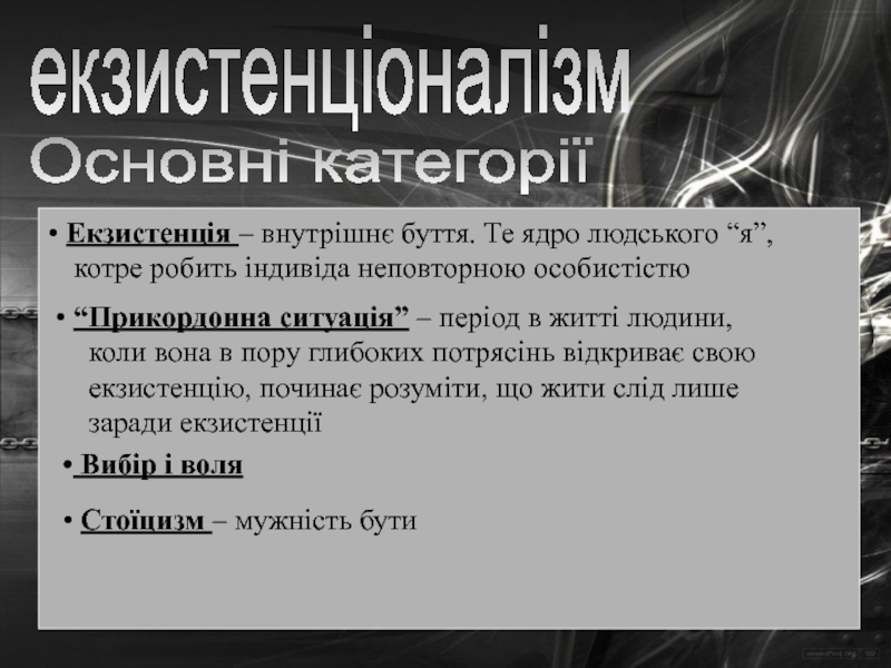 зв'язок з екзистенціалістськими ідеями та концепціями;