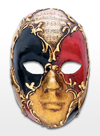 Доктор чумы. Маска, рожденная самой жизнью, а точнее смертью. Чума приходила в Венецию не однажды, унося сотни жизей. По обезлюдевшему городу ходили доктора, посещавщие пациентов. Чтобы не заразиться страшным недугом, надевали маску. В ее длинный клювообразный нос помещали различные ароматические масла и другие вещества - считалось, что они предохраняют от заражения чумой. Поверх одежды врач надевал темный длинный плащ из льняной или вощеной материи, а в руку брал специальную палку – чтобы не прикасаться к зачумленному руками.