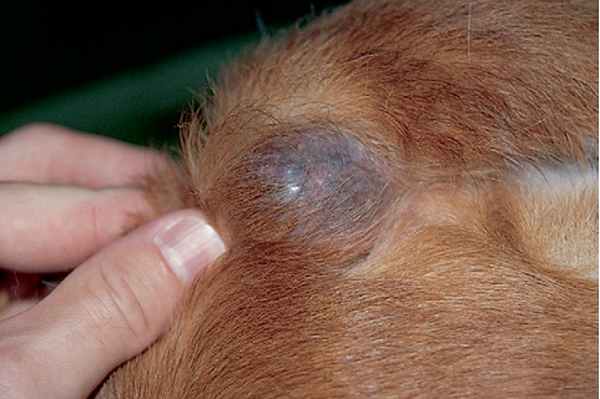 Фото 5 Опухоли волосяных фолликулов у собак и кошек. Большая безволосая кистозная опухоль на бедре собаки.