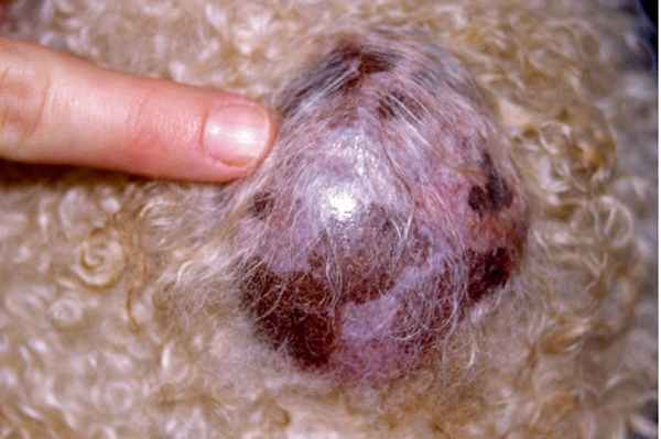 Фото 3 Опухоли волосяных фолликулов у собак и кошек. Эта большая киста на вентральной части грудной клетки помесной собаки была ассоциирована с фолликулярной опухолью.