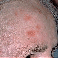 Актинические комедоновые бляшки - представляют собой единичные или множественные узлы или бляшки, локализующиеся на разгибательной поверхности предплечий и лице, особенно вокруг глаз и на верхней части щек. Цвет бляшек варьируется от розового до синего, на их фоне могут образовываться комедоноподобные элементы.