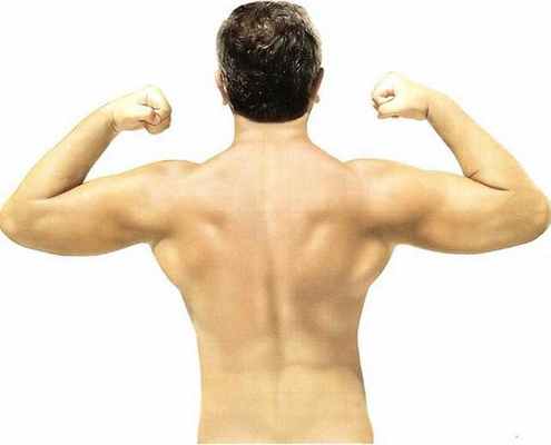 Рис. 248. Рельеф мыши спины (мужчина), вид сзади (фотография)