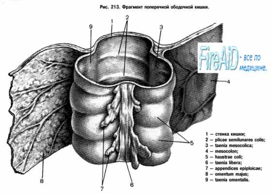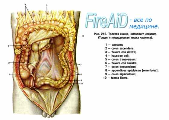 Haustra coli, teniae coli и appendices epiploicae служат опознавательными признаками для отличия толстой кишки от тонкой во время операции.