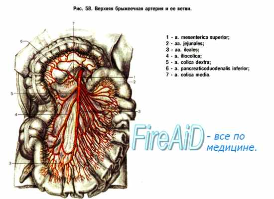 Кровоснабжение тощей и подвздошной кишок обеспечивается верхней брыжеечной артерией, отходящей от аорты и расположенной между ПЖ и ДПК. Артерия отдает свои ветви стенкам тонкой кишки, пройдя ее брыжейку. Из тонкой кишки кровь собирается в подслизистое венозное сплетение, откуда поступает в верхнюю брыжеечную вену, а через последнюю — по воротной вене в печень.