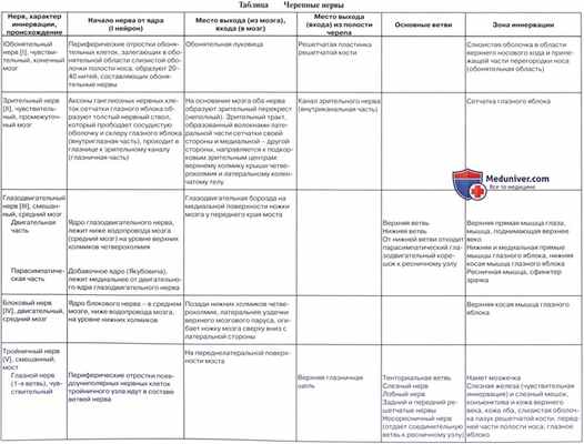 Только афферентные (чувствительные) нервы — это I, II и VIII пары. Только эфферентные нервы — III, IV, VI, XI и XII пары. Остальные четыре пары (V, VII, IX и X) — смешанные.