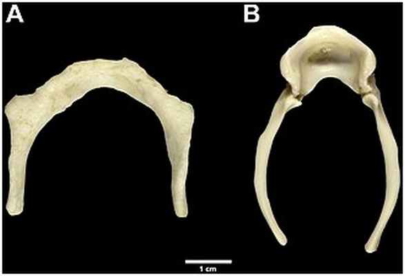 Форма, размеры и расположение подъязычной кости могут у разных людей незначительно варьировать, отличаясь как индивидуально, так и по половому признаку [3] .