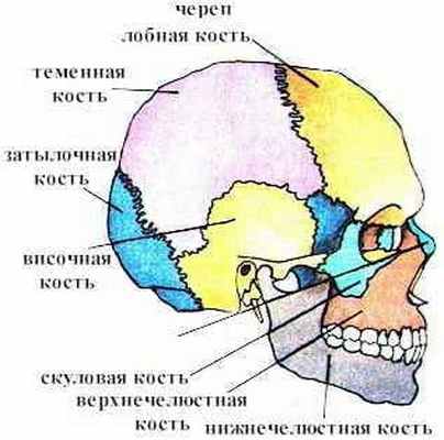 Описание основных костей черепа, их строение, соединение, функции. Подробные данные о мозговой и лицевой части черепа. Особенности каждого раздела. Стадии формирования скелета головы.