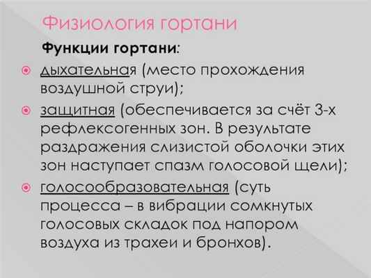 Связана с наличием трех рефлексогенных зон слизистой оболочки гортани: в вестибулярном отделе, на голосовых складках и в подголосовом пространстве. При раздражении слизистой оболочки этих зон наступает спазм голосовой щели.