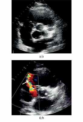 При трансторакальной эхокардиографии (ЭхоКГ) отмечались признаки атеросклероза аорты, дилатация всех камер сердца, со значительной объемной перегрузкой правого предсердия, сброс крови у основания септаль-