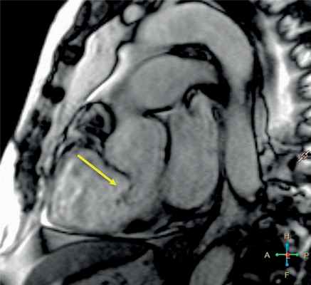 Рис. 3. Магнитно-резонансная томограмма сердца пациента И., наклонная ось.