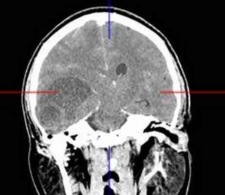 КТ головного мозга с контрастным усилением (24.03.2015): объемное кистозно-солидное образование правой теменно-височно-лобной области. Дислокационный синдром.