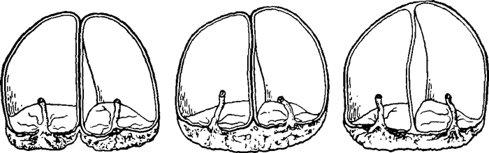 Двойни наиболее часто являются результатом оплодотворения двух отдельных яйцеклеток (рис. 8.1). Это двуяйцевые или дизиготные двойни. Среди всех видов двоен дизиготные наблюдаются в 70 %, Созревание двух и более яйцеклеток может происходить как в одном яичнике (ovulatio Hmovariales), так и в двух (ovulatio biovariales). Дизиготные близнецы могу! оыть как одно-, так и разнополыми, и находиться в той же генетической зависимости, что и родные братья и сестры,