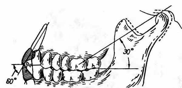 Соответственно величине угла сагиттального резцового пути любая точка на всех зубах нижней челюсти смещается вниз и вперед.