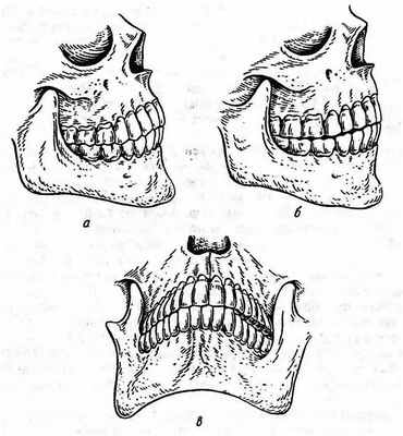 Дистальный , характеризующийся сильным выдвижением вперед центральных верхних резцов; Мезиальный , проявляющийся выдвижением вперед нижней челюсти;