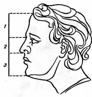 Положение нижней челюсти в состоянии физиологического покоя помогает определить вертикальный размер нижнего отдела лица (рис. 31)— расстояние от точки, расположенной у нижнего края перегородки носа, до точки на нижнем краю мягких тканей подбородка.