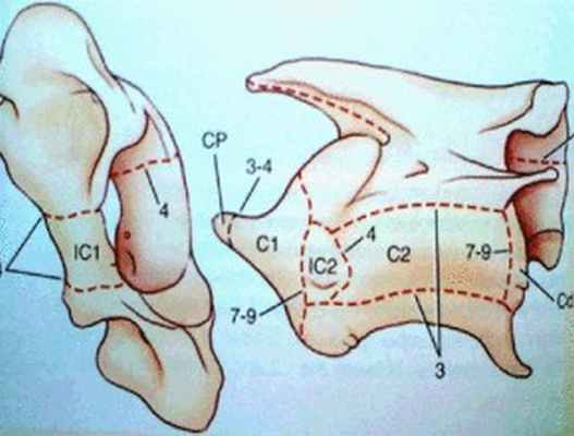 Иногда вследствие хронического вывиха постепенно развивается атрофия дорсальной (верхней) дуги атланта от постоянного давления, что хорошо видно на рентгеновском снимке в виде отсутствия дорсальной части атланта.