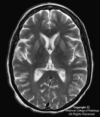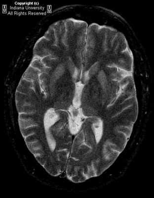 Магнитно-резонансная томография позволяет получить качественные и контрастные изображения головного мозга пациента. Во время проведения МРТ выявляются участки повышенного сигнала, локализованные в подкорковых ганглиях и таламусах. Кроме того, магнитно-резонансная томография дает возможность успешно определять признаки атрофических изменений мозжечка, коры головного мозга и расширение желудочковой системы.
