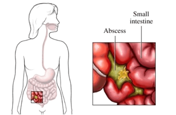 - Заболевания органов ЖКТ. Встречаются абсцессы брюшной полости, обусловленные панкреатитом: в этом случае их развитие связно с действием ферментов поджелудочной железы на окружающую клетчатку, вызывающим выраженную воспалительную реакцию. В некоторых случаях абсцесс брюшной полости развивается как осложнение острого холецистита или прободения язвы желудка и 12-перстной кишки, болезни Крона.