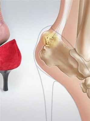 - Ношение тесной и неудобной обуви. Так как происходит нефизиологическое распределение нагрузки, то патология возникает в ответ на этот фактор. Подобное явление наблюдается у женщин, часто носящих обувь на высоком каблуке. Обувь с чрезмерно твердым задником травмирует постоянно околосухожильные сумки, поэтому и возникают подобные осложнения. Лечение и профилактика заключаются в смене обуви и проведении реабилитации.
