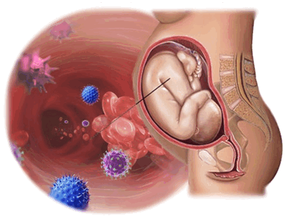 При наличии инфекции в канале шейки матки у беременной, заражение плода может происходить в родах, во время прохождения плода по родовым путям.