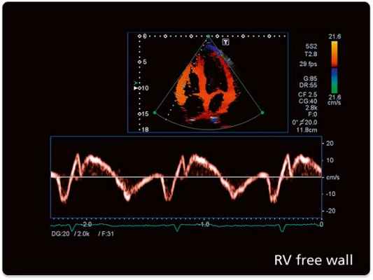 Главное ограничение регистрации скорости движения ткани заключается в том, что при ТД может быть пере- или недооценка реальной скорости или функции тканей из-за поступательного движения или предела ограничений. Анализ скорости деформации (е) миокарда поможет преодолеть эти ограничения путем измерения реальной скорости укорочения и удлинения участка миокарда.