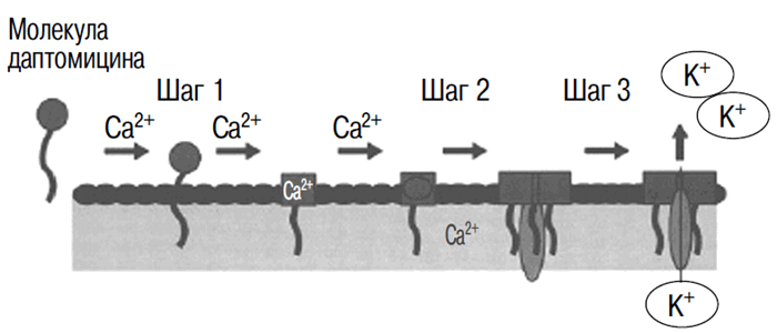 Рис. 2. Механизм действия даптомицина