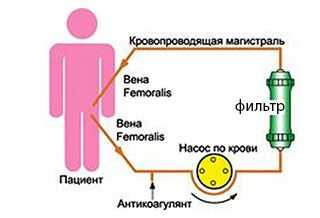 Гемоперфузия осуществляется по так называемому вено-венозному способу: