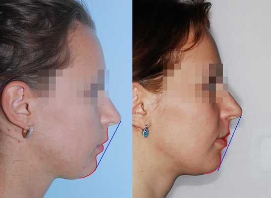 Профиль до и после лечения дистального прикуса
