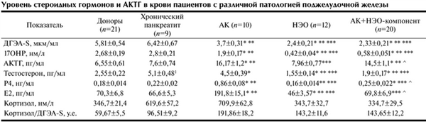 Уровень стероидных гормонов и АКТГ в крови пациентов с различной патологией поджелудочной железы