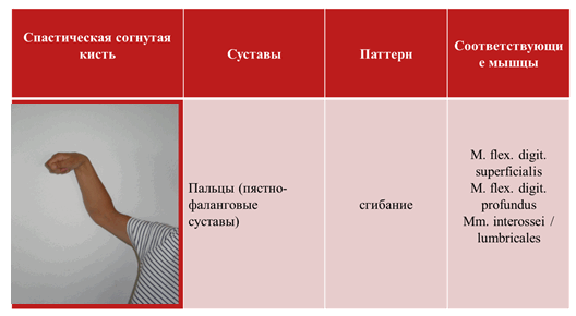 В широкомасштабном исследовании ULIS было показано, что наиболее распространенным паттерном спастичности руки является тип III (41,8%).
