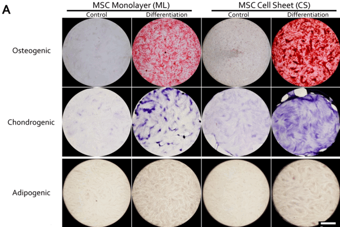 В основу исследования легла клеточная модель первичной соединительной ткани на основе пласта, которую также используют при хирургическом устранении повреждений организма. Эти пласты синтезируют в той же среде, в которой формируются костные, жировые и хрящевые ткани. Ученые следили, как изменяется процесс формирования структур ММСК, чтобы оценить различные варианты дифференциации клеток.