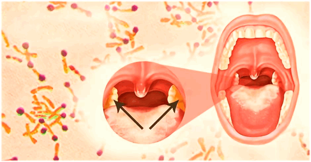 - Распространенную, отличимую по наличию налета не только на миндалинах, но и на других слизистых ротоглотки.
