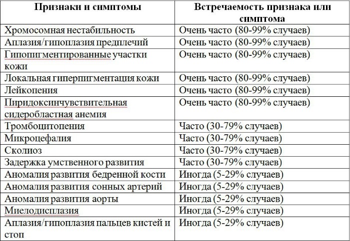 Таблица 1 | Признаки и симптомы анемии Фанкони