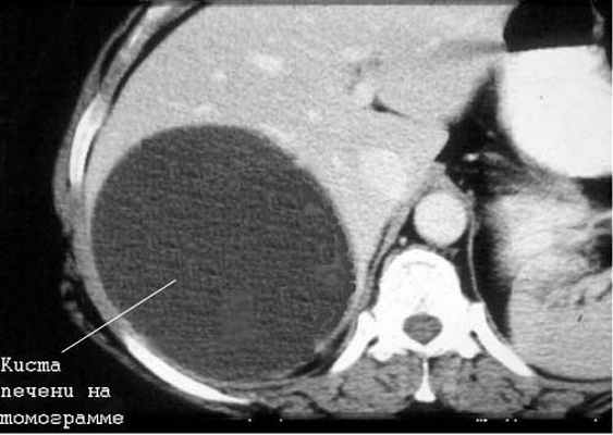 Большинство кист небольшие (диаметром 1-5 см), чаще встречаются у женщин. Значительная часть их имеет бессимптомное течение. У ряда больных отмечаются боли в правом подреберье, у одних — постоянные, у других — периодические. Существенную помощь оказывает использование УЗИ и КТ (или ЯМР), обладающие высокой разрешающей способностью. Необходимо учитывать возможность поликистоза печени.