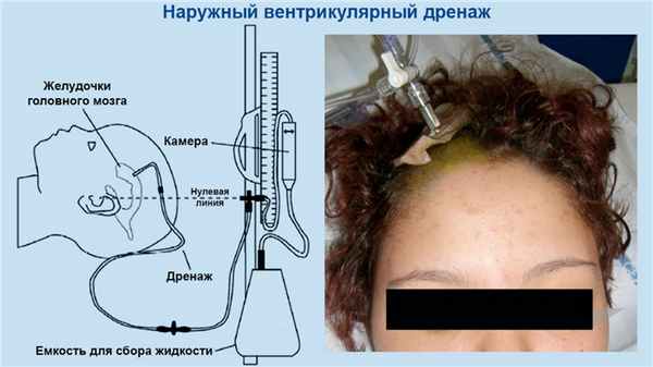 Все три метода инвазивные, требуют установки специального датчика, применяются только в условиях стационара. При таком мониторинге иногда дополнительно обеспечивают наружный вентрикулярный дренаж, который позволяет контролировать внутричерепное давление (рис. 3).