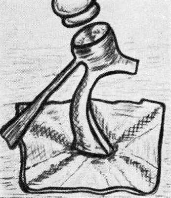 В связи с этим Ши отказался от предложенной ранее им методики полного удаления подножной пластинки и ограничивается лишь созданием небольшого отверстия в ней. В это отверстие вводится тефлоновый протез наподобие поршня, укрепляемого при помощи кольцевидного расширения, в которое и вставляется длинный отросток наковальни после резекции лентикулярного ее отростка (рис. 6).
