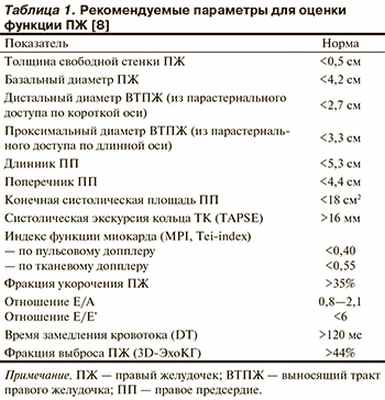 В рекомендациях Американского (ASE) и Европейского (EAE) обществ по ЭхоКГ, опубликованных в 2005 г. [7], основные измерения относились к исследованию левых отделов сердца, и лишь небольшой их раздел касался ПЖ и правого предсердия. В 2010 г. по результатам многоцентровых исследований с участием большого числа больных и в связи с получением новых данных о роли ПЖ в центральной гемодинамике были разработаны и созданы отдельные рекомендации по эхокардиографической оценке правых камер сердца [8]. Они более подробно освещают вопросы измерения ряда необходимых параметров, оценки систолической и диастолической функций ПЖ, в том числе с помощью современных эхокардиографических технологий, таких как тканевая допплеро-графия миокарда (ТДМ) и трехмерная эхокардиография (3D-ЭхоКГ). В новых рекомендациях с учетом данных последних исследований скорректированы некоторые количественные критерии, а также уделено особое внимание необходимости комплексного подхода не только к определению размеров, объемов, но и к исследованию параметров систолической и диастолической функций ПЖ. Однако стандартизация протокола по оценке правых отделов сердца до сих пор не завершена. Отчасти это связано с небольшим количеством крупных исследований с использованием современных эхокардиографических технологий, а также с появлением новых эхокардиографических методов (технология speckle tracking, 3D Strain), применение которых требует дальнейшего изучения.