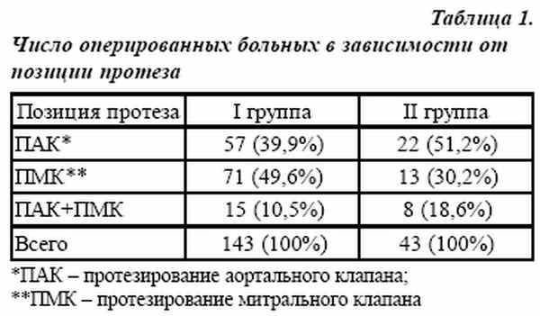 В работе представлен анализ результатов хирургического лечения 195 пациентов, оперированных по поводу поражения клапанного аппарата сердца в сроки с марта 1995 по январь 1999 г., в отделе кардиохирургии НИИ кардиологии МЗ РФ (СПб). Из числа оперированных больных были сформированы 2 группы.