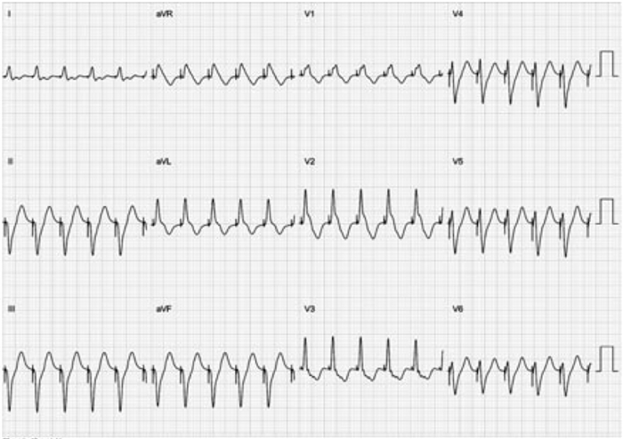 Пациентка И., 49 лет, поступила в НЦССХ им. А.Н. Бакулева РАМН с жалобами на перебои в работе сердца, которые отмечала с детства. За медицинской помощью не обращалась, лекарственной терапии не получала. С 2010 г. на фоне перебоев в работе сердца стала отмечать одышку, слабость, головокружение. Пациентка обратилась к кардиологу по месту жительства, где при проведении электрокардиограммы (ЭКГ) и мониторирования ЭКГ по Холтеру выявлены около 15 тыс. мономорфных желудочковых экстрасистол с морфологией блокады правой ножки пучка Гиса и периодическими пробежками неустойчивой желудочковой тахикардии (ЖТ) с морфологией блокады левой ножки пучка Гиса. Кардиологом назначена терапия аллапинином, амиодароном – без эффекта.