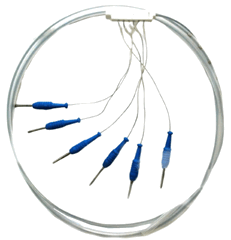 Электрод представляет собой отрезок провода, армированный с одного конца контактами, а c другой в конце расположен распределитель со штырями.