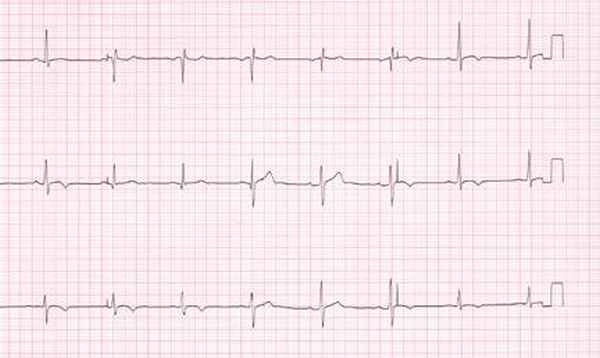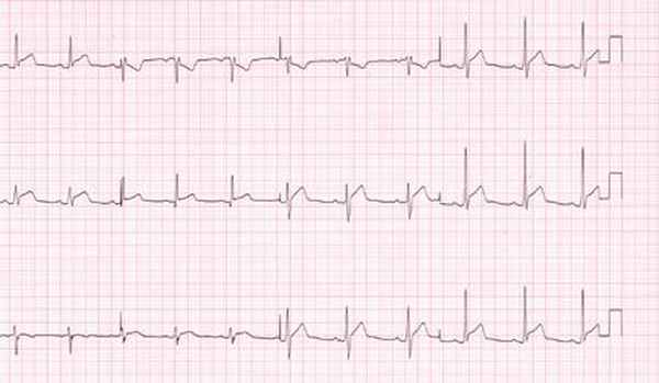 Синусовая тахикардия с частотой сокращений желудочков 100 в минуту. Незначительный подъем сегмента ST и положительный зубец Т в отведениях I, II и V2-V6, прежде всего в отведениях V5 и V6.
