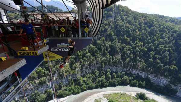 Трудно ли это — сделать шаг в бездну? Проверить можно в сочинском Скай-парке. Для начала взойдите на подвесной мост, протянутый над пропастью на высоте 200 метров. Если желание покорять высоту не пропало — делайте следующий шаг, гораздо более серьезный: прямо в эту самую пропасть. Называется развлечение не для всех «роуп-джампинг», многие о нем слышали, смотрели видео с ныряющими вниз людьми. Но одно дело видеть, другое — сделать самому. Если вам все же удастся преодолеть свой страх — впечатлений хватит на всю жизнь, смело можно переходить к следующему шагу — прыжку с парашютом. В Сочи есть возможность прыгнуть с высоты 207 метров, аттракцион так и называется — Bungy 207.