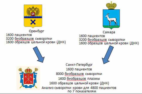 Для проведения мониторинга факторов риска были отобраны двенадцать регионов РФ с различными климато-географическими, экономическими и демографическими характеристиками. Один из регионов – Санкт-Петербург. Специалисты Петербурга, в свою очередь, осуществляли контроль за ходом исследования в Оренбурге и Самаре, где были скринированы 4800 пациентов.