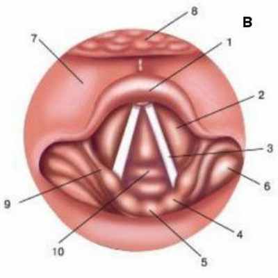 Таким образом, можно рассмотреть черпаловидные хрящи, заднюю стенку трахеи, голосовые связки и т.д.
